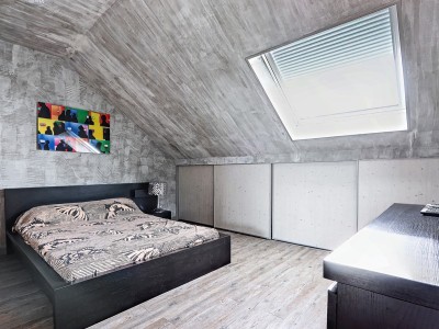 - 3ème niveau : 2 chambres, un grand espace bureau/salle de jeux pouvant être transformé en deux chambres supplémentaires et la possibilité de créer une salle d'eau à cet étage.
